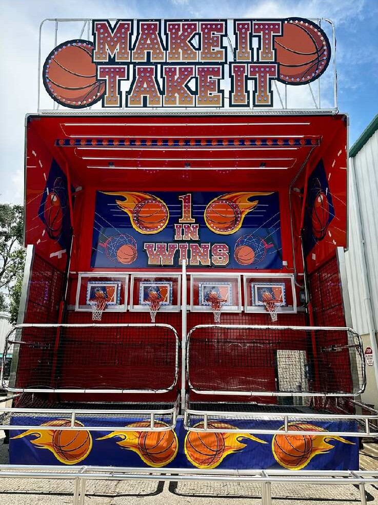 Bring out the sharpshooters with our Basketball Game Trailer, a high-energy crowd favorite that lets guests test their aim and speed. With four side-by-side hoops, vibrant lighting, and a classic midway look, this attraction creates instant excitement at school carnivals, company events, and festivals of all sizes.