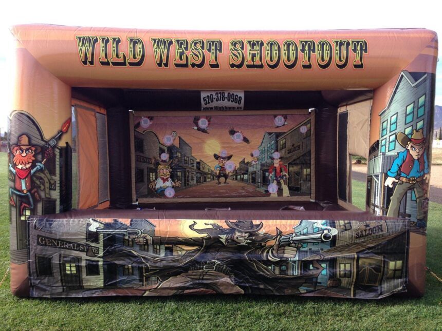 Wild West Shootout Carnival Shooting Game is fun and challenging for your next event. Get this Carnival Shooting Game and some rides today. The Wild West Shootout game has lots of targets to try and hit with nerf guns, lots of fun for all. Want more western-themed items for your event? Check out Mechanical Bull, Wild One Roller Coaster Obstacle Course, Selfie Booth, and more. Plus, other great games like Whack a Mole, Wild One Roller Coaster, and our famous Wipe Out Challenge.
