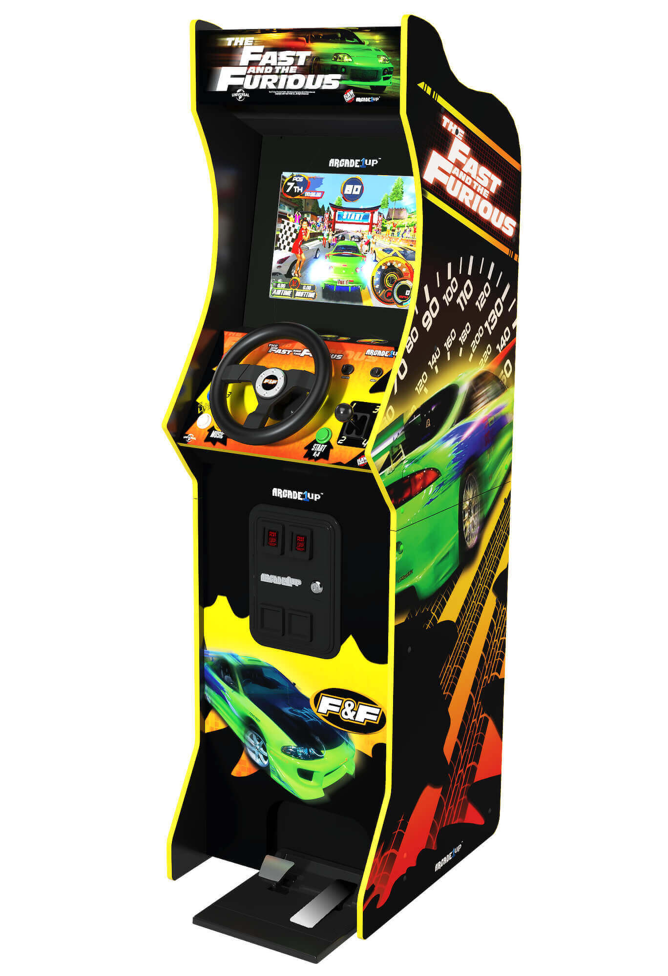 Fast & Furious pairs naturally with other BYB arcade favorites like Guitar Hero Arcade, Pool Table, Pinball Machines, and Pac-Man / Galaga, helping you build an arcade zone that appeals to both competitive players and casual guests. It also complements social games like Foosball, Air-Hockey Tables, and Shuffleboard, keeping guests engaged while waiting their turn.