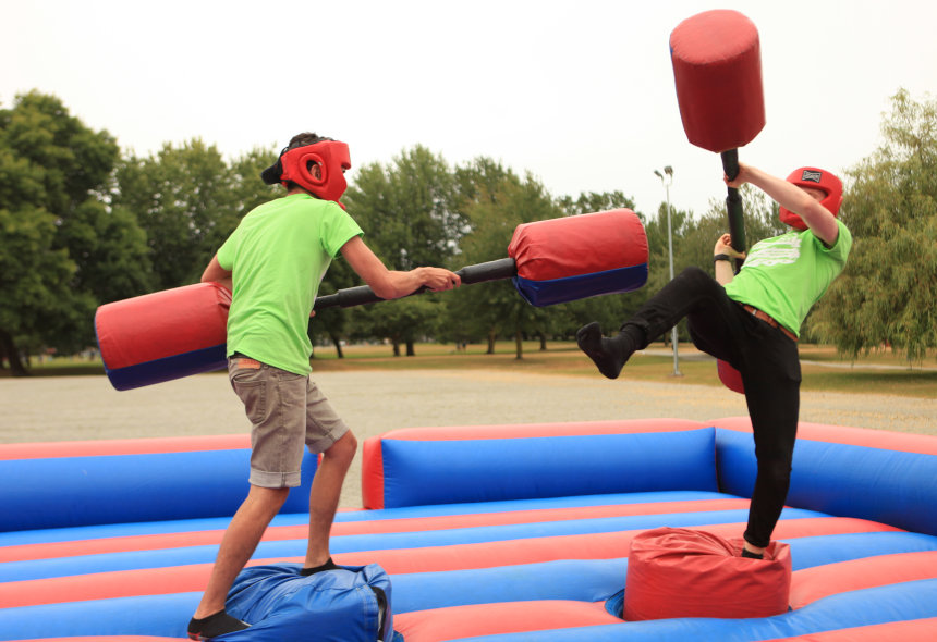 Our Inflatable Joust is a great competition for your co-workers. So, contact BYB for more information on our Inflatable Joust. Prepare to do battle as you go head-to-head in a fun and interactive jousting competition. The two combatants will attempt to knock each other off of their pedestals using only their jousting sticks. Who is the jousting champion of your office? Joust is great for Team Building, Church Events, Company Picnics and Events, and much more!