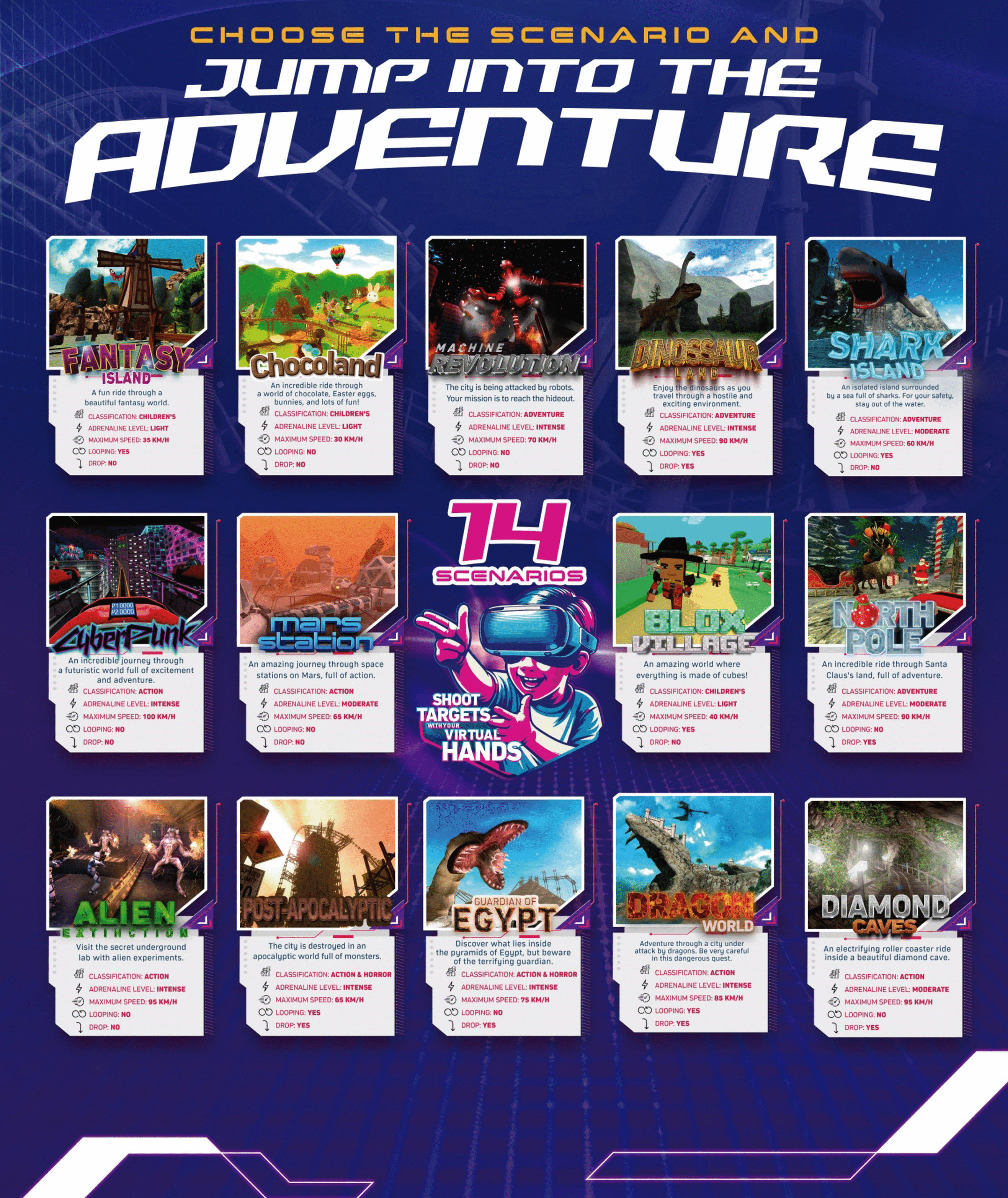 Our Virtual Reality Coaster is fun at parties and events. Put on the virtual reality goggles and throw up your hands for this coaster ride. The coaster car will move up and down, left and right along with the game as it plays on your VR headset. Choose from 14 rides for thrill after thrill. It will feel as though you are really riding the ride. Plus, families and friends can watch the excitement on the tv screen. Make sure to check out our other great games available for your event.